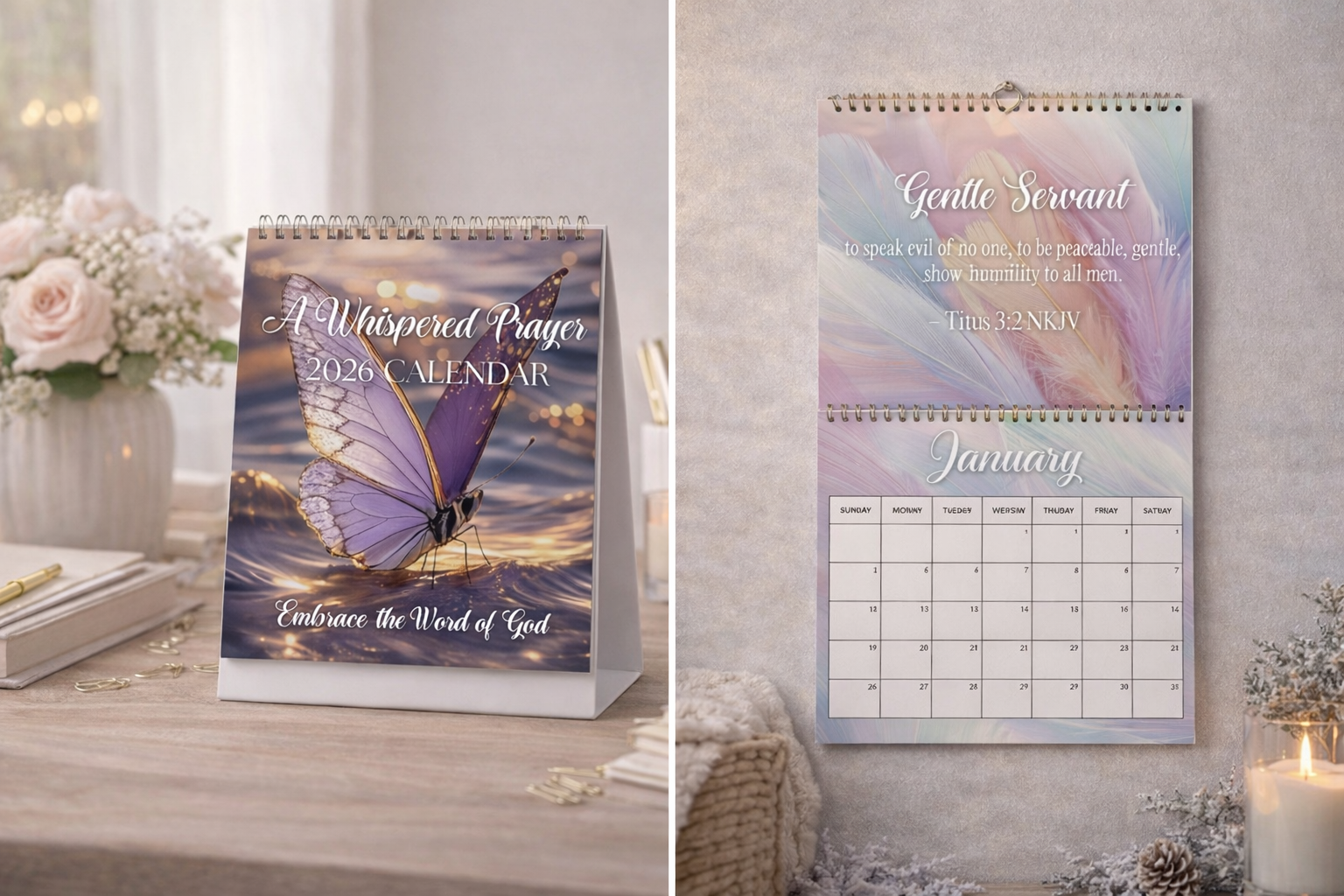 Enjoy a year of inspiration with our devotional calendars. Thoughtfully designed to uplift your spirit and strengthen your faith all year long, each month features words of inspiration along with an encouraging scripture. Whether placed on your desk at work, in your kitchen at home, or given as a heartfelt gift, these calendars serve as a daily reminder of God's promises, grace, and unfailing love. Stay encouraged, stay inspired, and stay rooted in the Word. Order your devotional calendars today and make every month a blessed beginning.