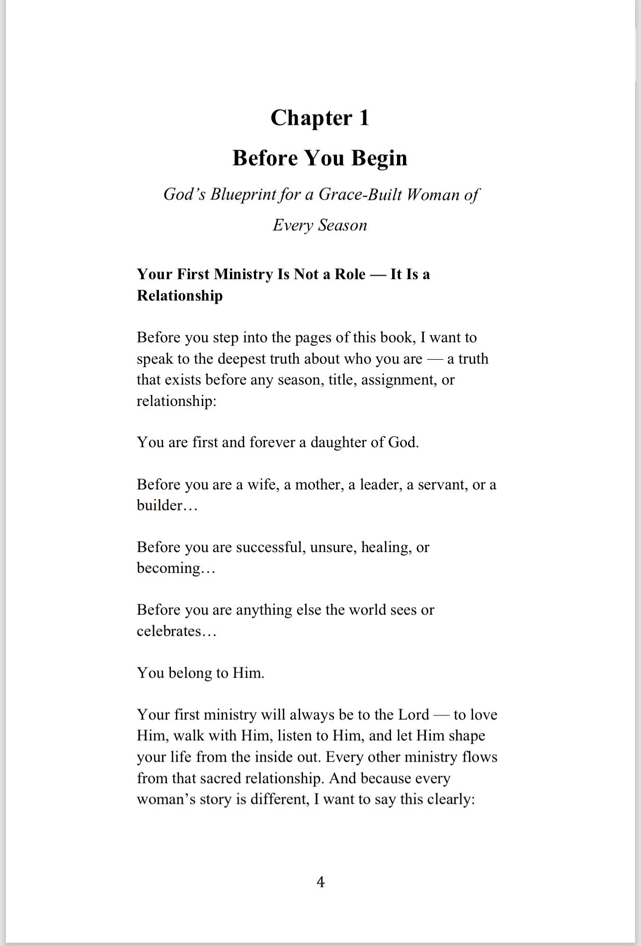 This book calls women to step out of performance, pressure, and perfectionism, and into the steady, strengthening work of God’s grace. In a world that constantly demands more, Grace-Built Woman gently redirects the heart back to what truly builds us: surrender, obedience, and daily dependence on Christ.